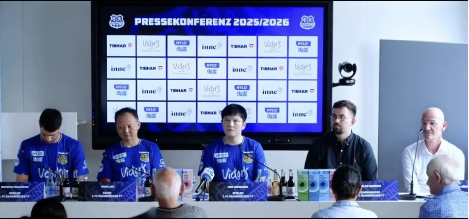 今天,德甲萨尔布吕肯俱乐部举行新闻发布会,樊振东身着队服亮相。